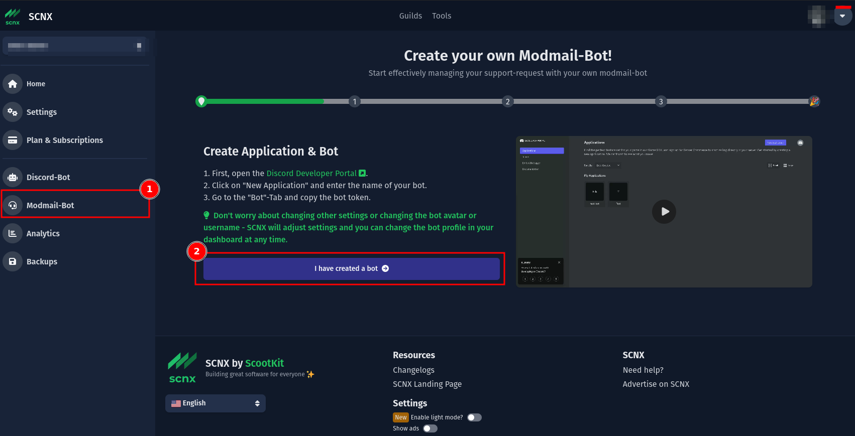 2. Erstelle deinen Modmail-Bot auf SCNX 🚀